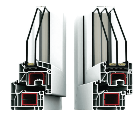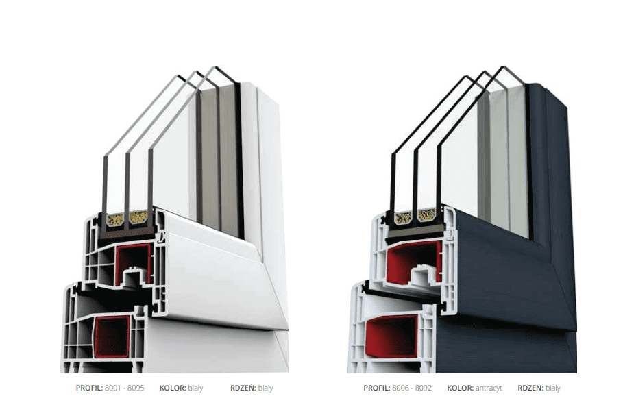 * white windows have 6 chambers in frame and sash, whereas in coloured windows there are 5 chambers in frame and sash